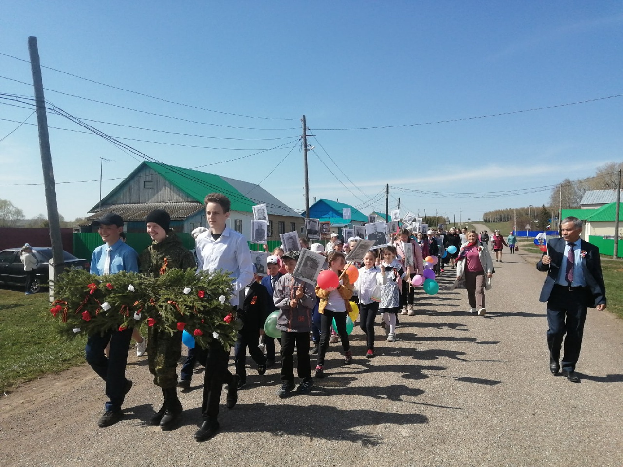 9 мая наша школа приняла участие в шествии "Бессмертный полк", митинге у обелиска и праздничном концерте.