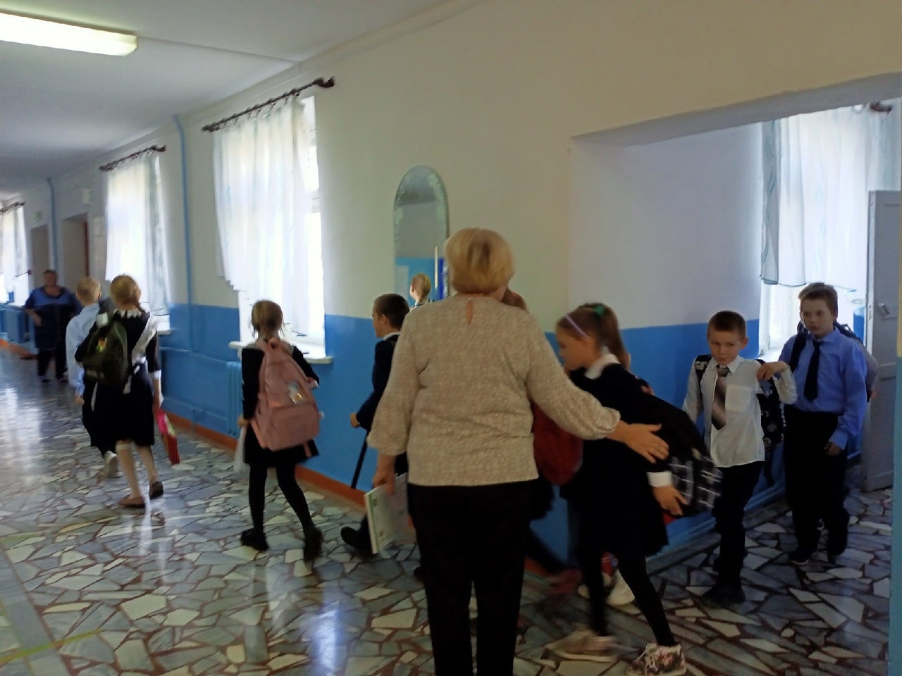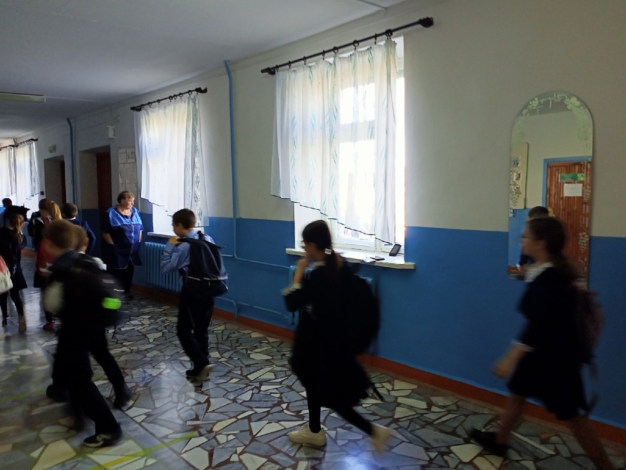 Сбор всех учеников был организован на площадке перед основным входом согласно по плану.