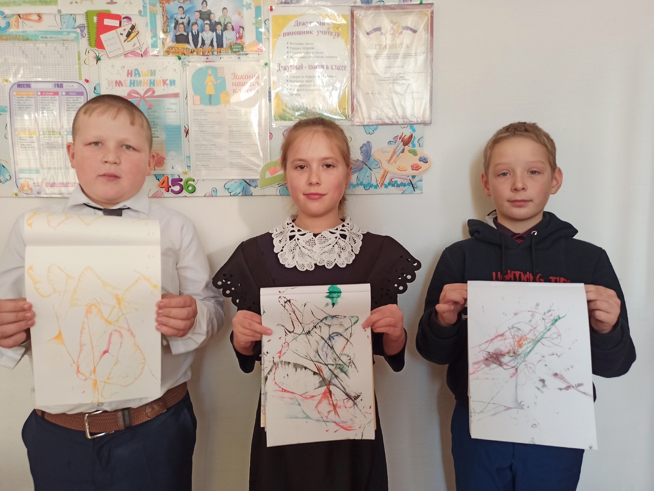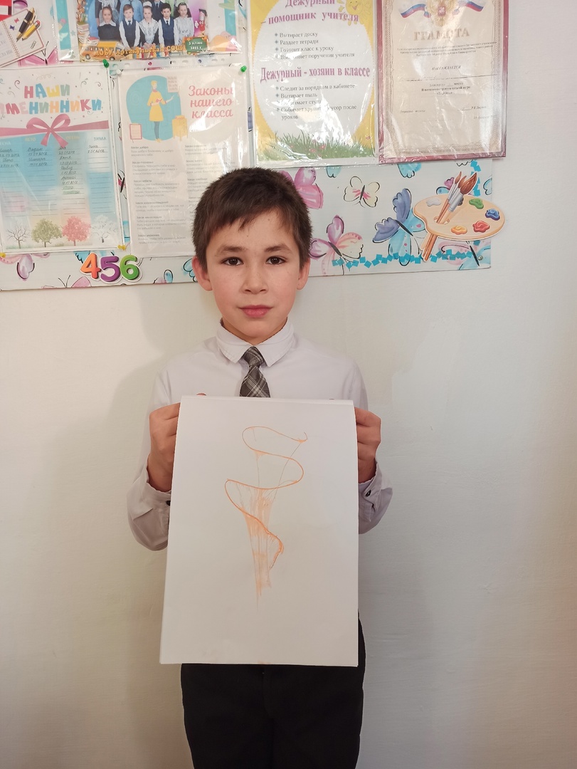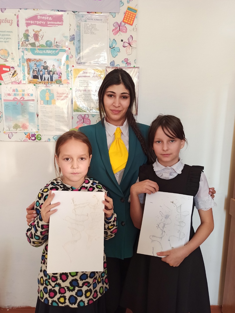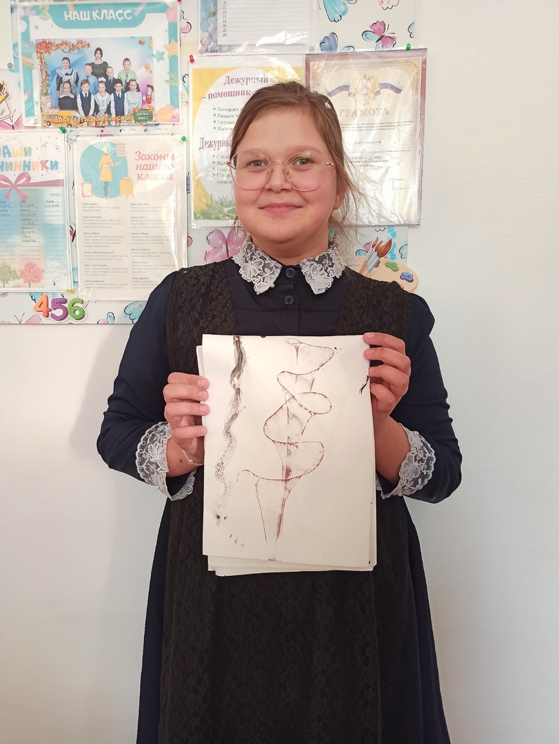 С учащимися 4 класса изучили новую технику рисования "Ниткография "