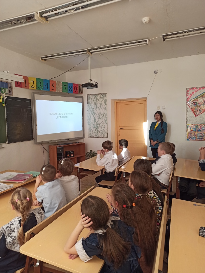 С учащимися младших классов просмотрели цикл мультфильмов о подвигах детей во время Великой Отечественной войны «Высшая степень отличия. Дети-герои»