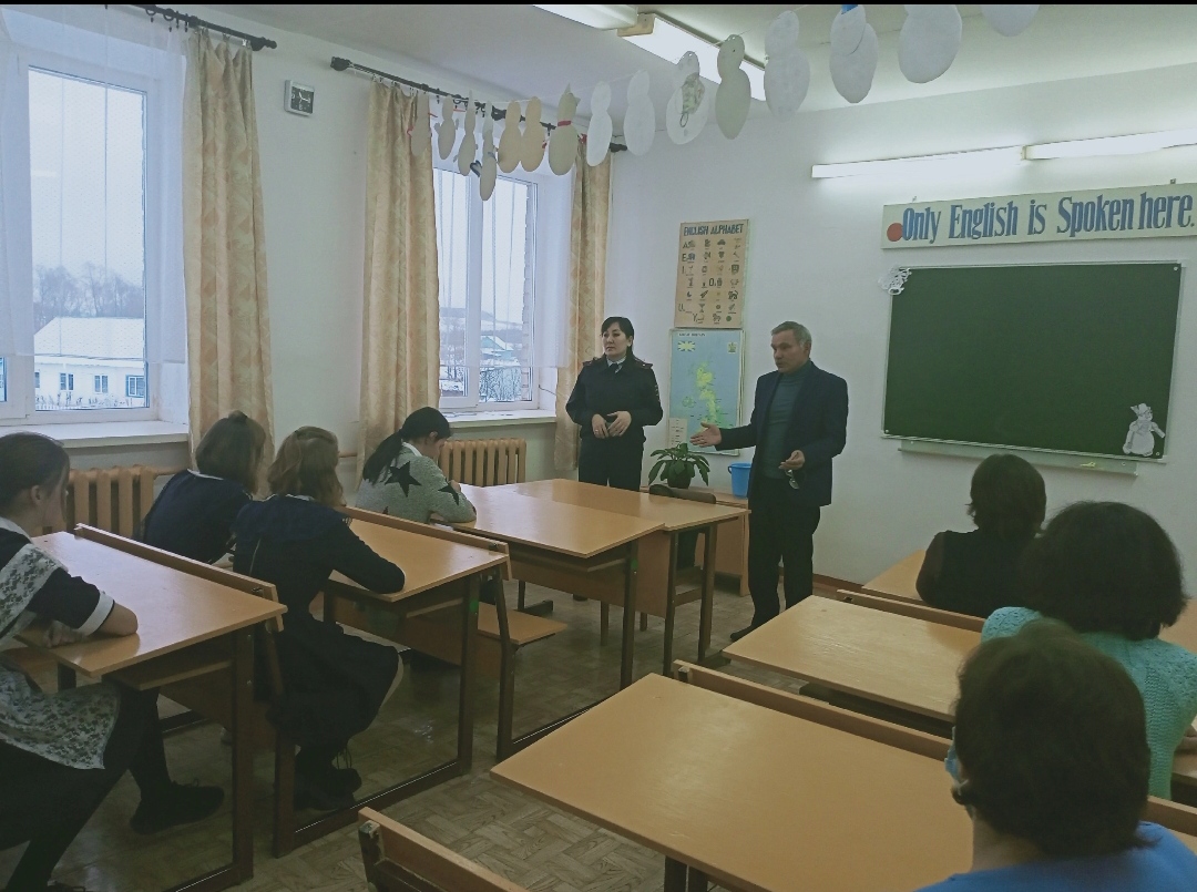 19 декабря нашу школу посетили : старший инспектор ПДН Отдела МВД России по Караидельскому району майор полиции Ибрагимова Л. Р. и педагог психолог СПП Багаутдинова Ю.Р. с целью профилактики правонарушений среди несовершеннолетних.